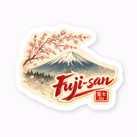 Featuring a washi-paper texture and hand-brushed “Fuji-san” calligraphy,